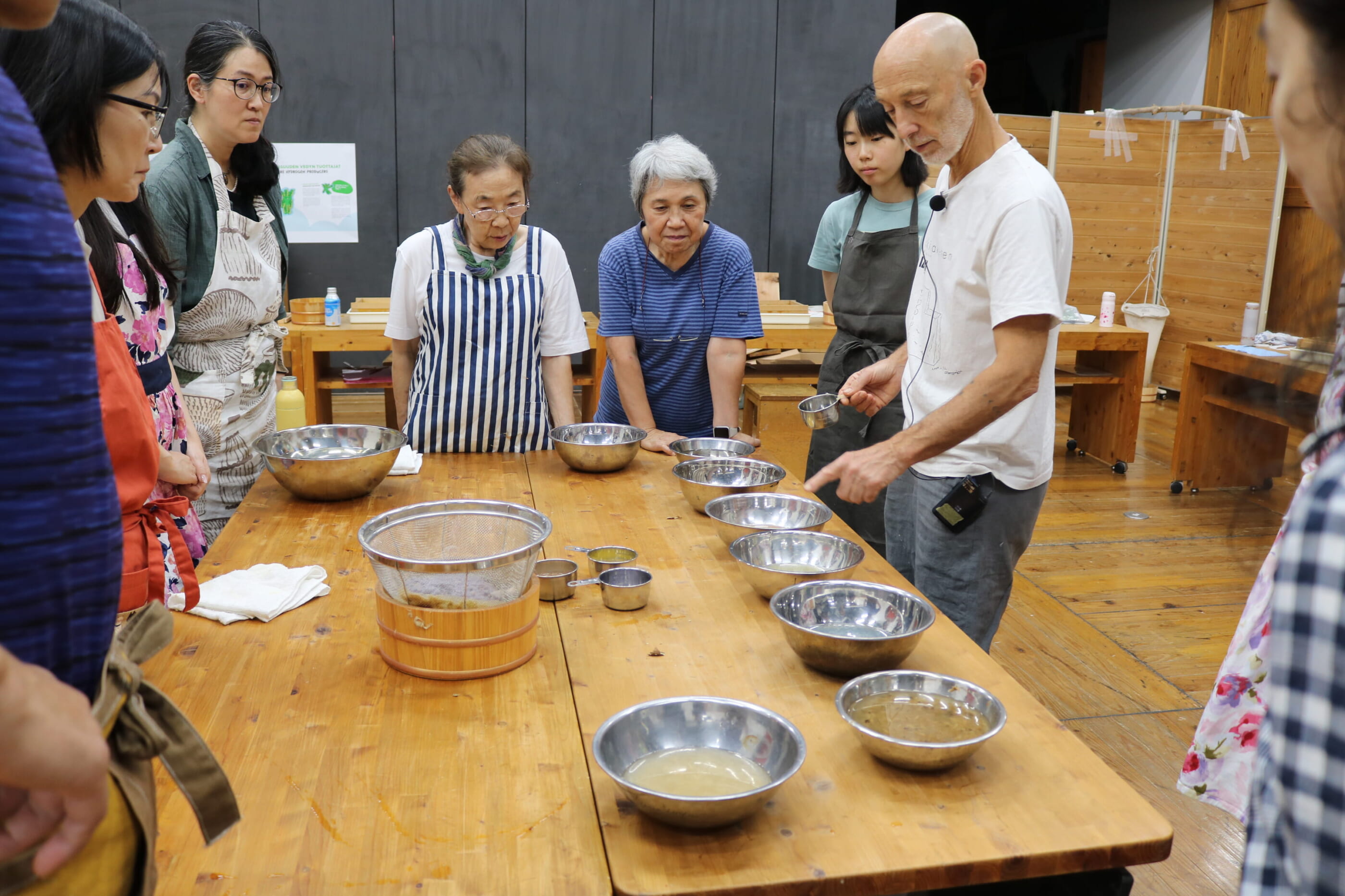 伝統的な道具を使って和紙作りをしている高知県梼原町にある講師の工房の紹介がありました。講師は原料のコウゾ、ミツマタの生産にも取組んでいます。伝統技術の紙すきから生まれる和紙は、1000年以上保存が可能であり、丈夫で独特な質感があります。また、空間を明るくする特性を活かし、インテリアや内装、服飾と様々なものに使われています。