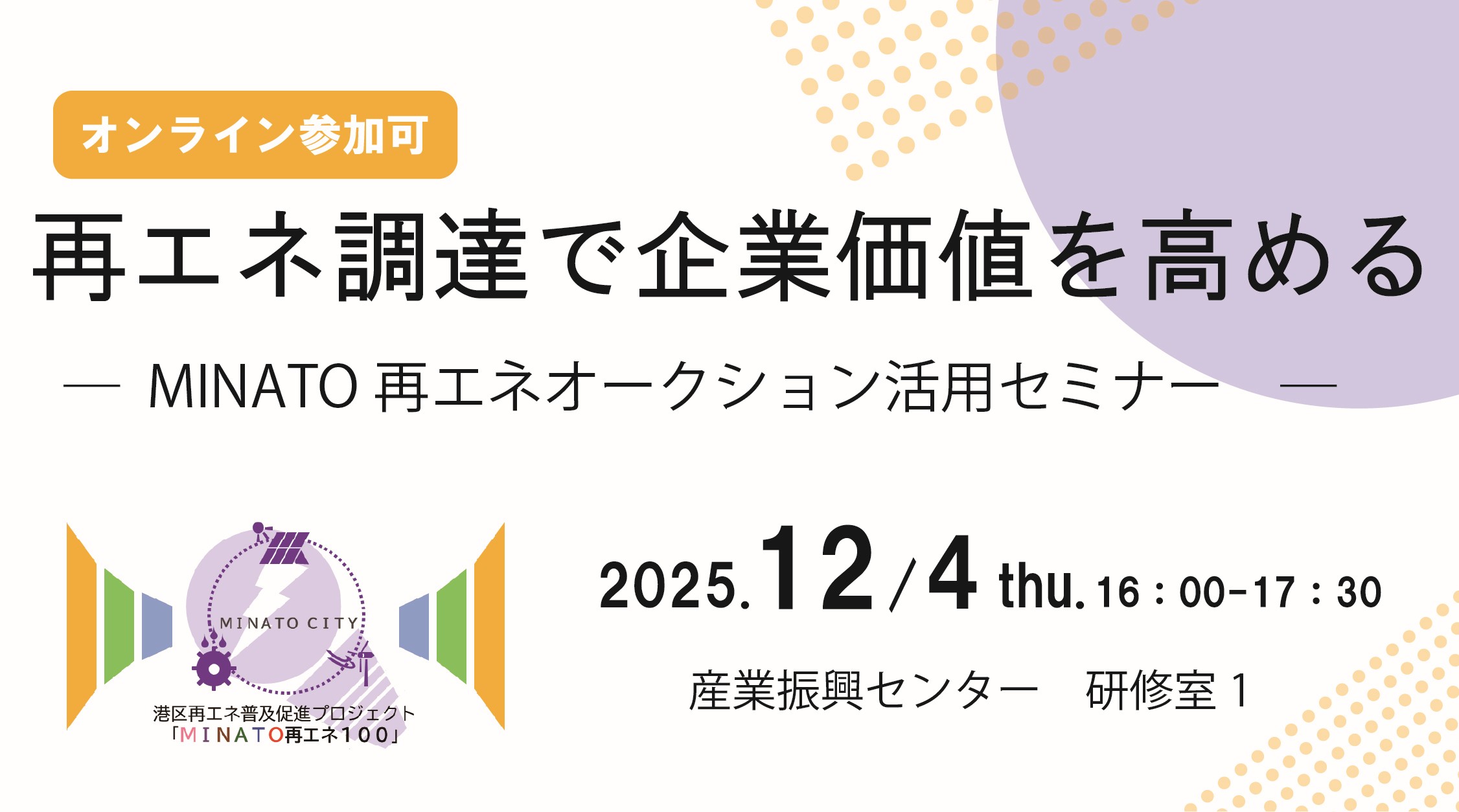 12/4(木) 16:00~17:30 【オンライン参加可】再エネ調達で企業価値を高める ~MINATO再エネオークション活用セミナー~