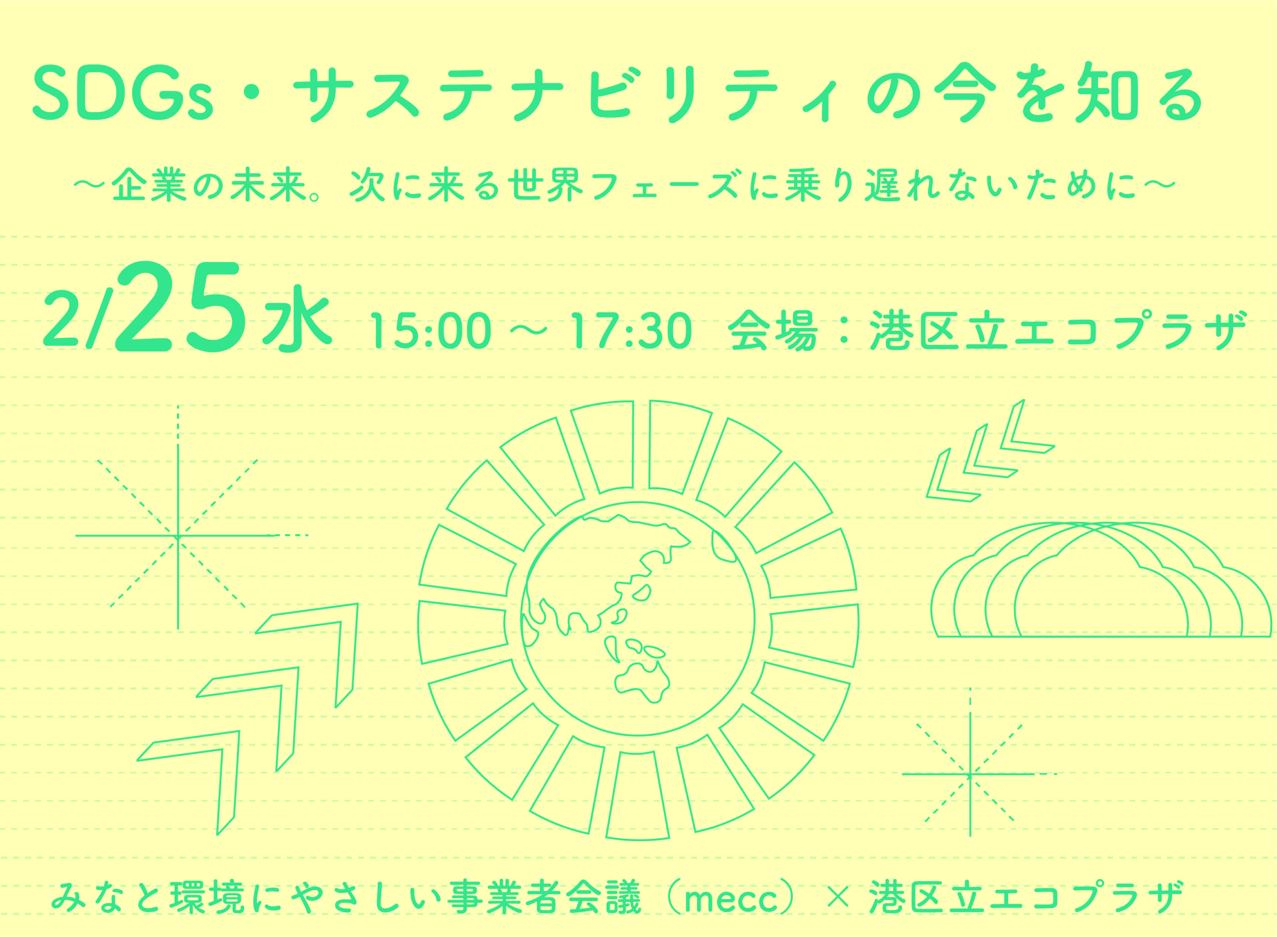 みなと環境にやさしい事業者会議(mecc)との共催企画「SDGs・サステナビリティの今を知る」を開催します。