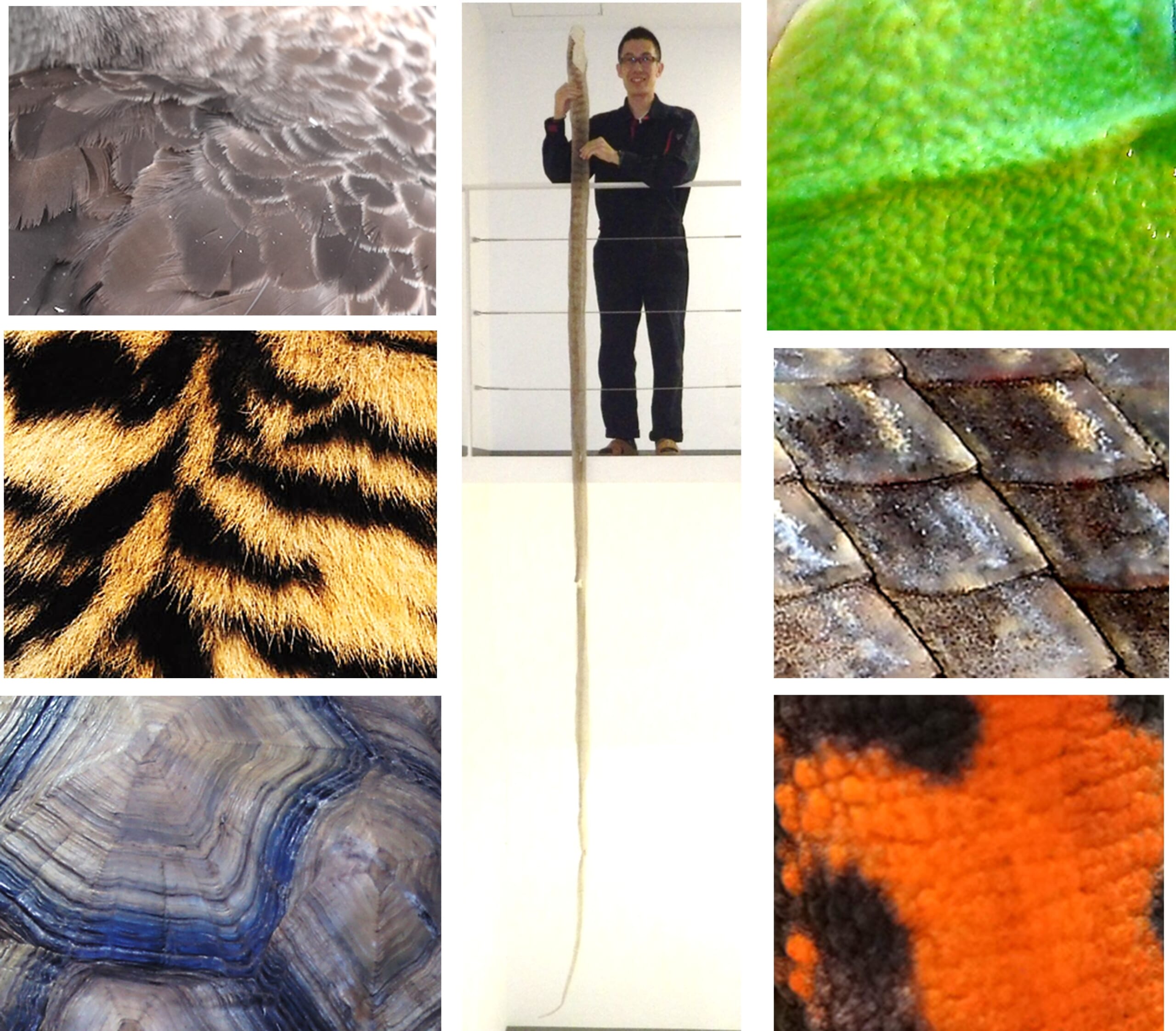生きものは様々な環境で生き抜くために進化してきました。最も外側で体を守る皮ふも多様な変化をしており、それぞれの生活に密接に関係しています。魚類・両生類・ハ虫類・鳥類・ほ乳類などセキツイ動物の皮ふを中心に実際に触れて、それぞれの特徴や違い、進化の過程を体感しましょう!