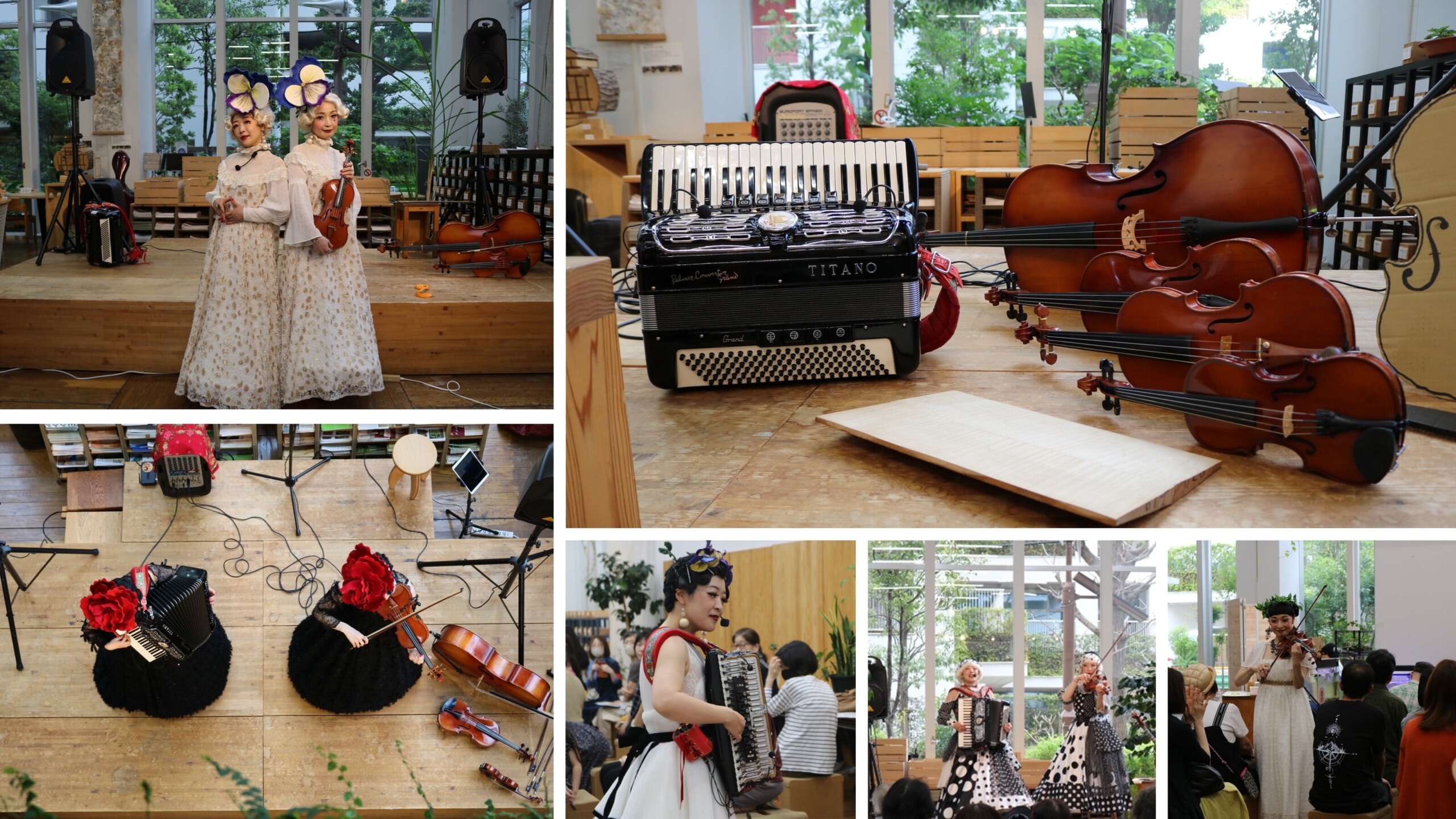 木で作られた楽器をテーマに、ここでしか聞けない楽器についてのレクチャーと演奏を併せた「黒色すみれ」の音楽会を開催します。木に囲まれたエコプラザの空間で奏でられるヴァイオリンやアコーディオンからはどのような響きが生まれるのでしょうか?音色を通した木のぬくもりや心地よさを感じながら、お楽しみください。