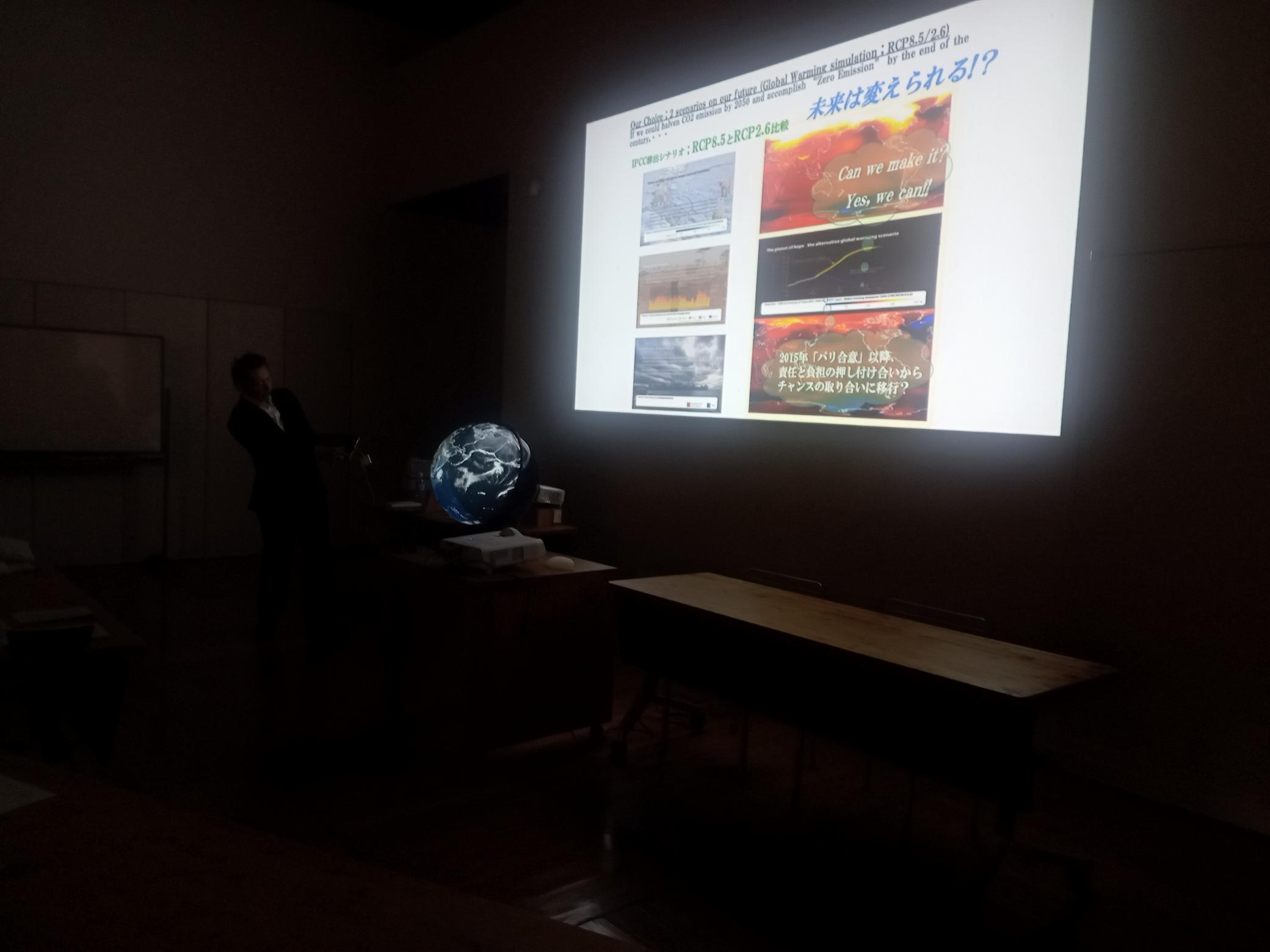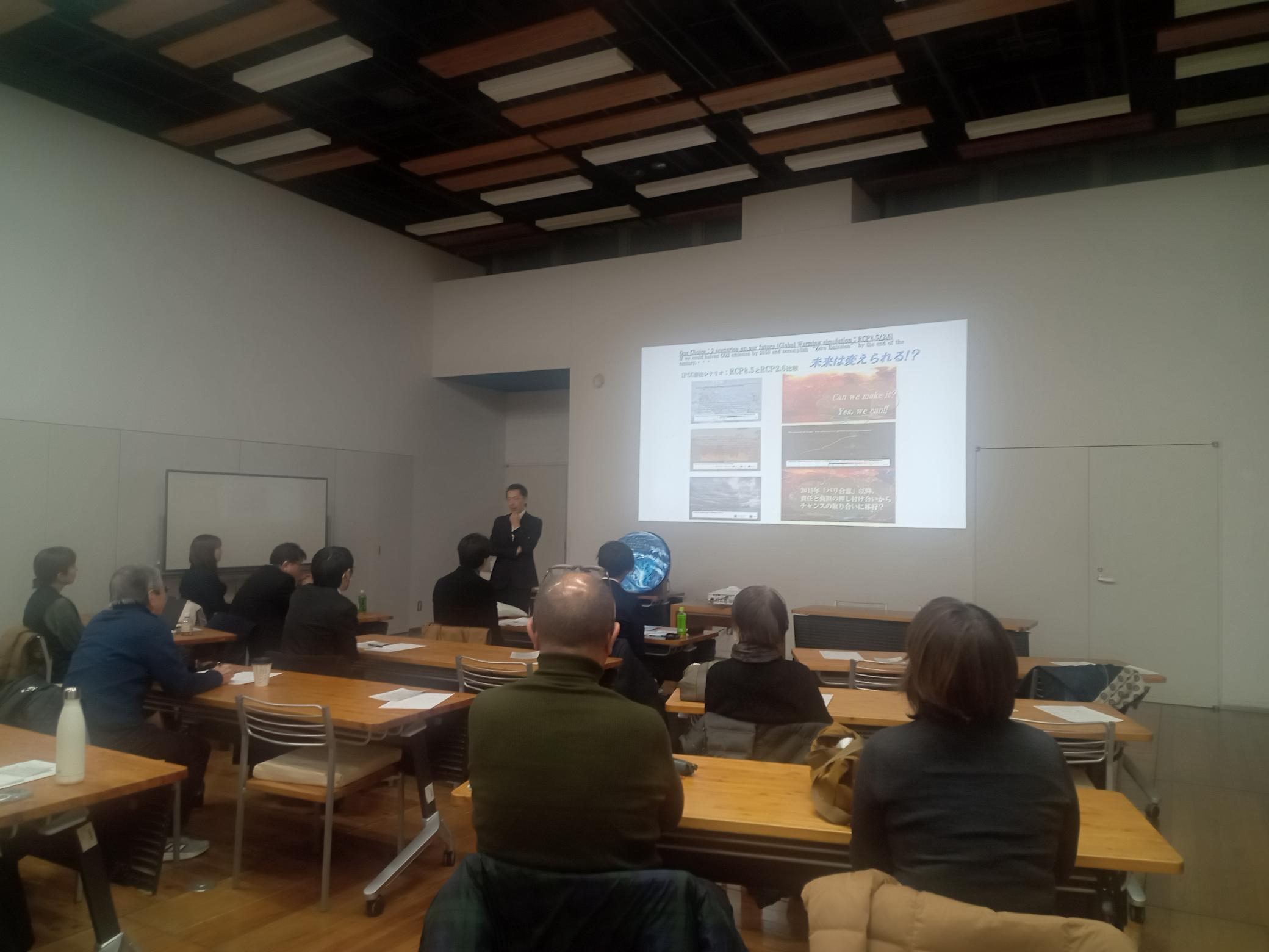 文化人類学者の竹村氏よりデジタル地球儀「触れる地球」SPHEREを交えて気候変動を中心とした地球環境の変化についてご講演いただきました。まず最初に「全てが人類の影響かどうかはわからないが、温暖化は急速に進んでおり、SNSなど世界規模のコミュニケーションツールは発達しているが、人間と地球とのコミュニケーションができていないのでは」と問題定義がありました。その後、SPHEREを使って地球との様々なコミュニケーションが紹介されました。SPHEREは、世界のリアルタイムの映像や天気図から地球全体の状況を読み解いたり、大陸移動の変化を見ることで現在日本で起こっている地震との関連を見ることができます。その他にも世界の春夏秋冬の移り変わりや海面水温の昇降なども見ることができます。こうして地球をマクロに捉えることで地球温暖化の状況を多面的に考察することができ、また、災害を予知することができるため、予防減災の一役を担うこともできます。参加者の方からは「広い目線で地球を再認識できた」「物事を一面だけで捉えてはいけないと勉強になった」などの意見がありました。様々な側面の情報を持つ地球儀から、地球をマクロに捉える視点を学び、私たちが今すべき事を考える機会となりました。