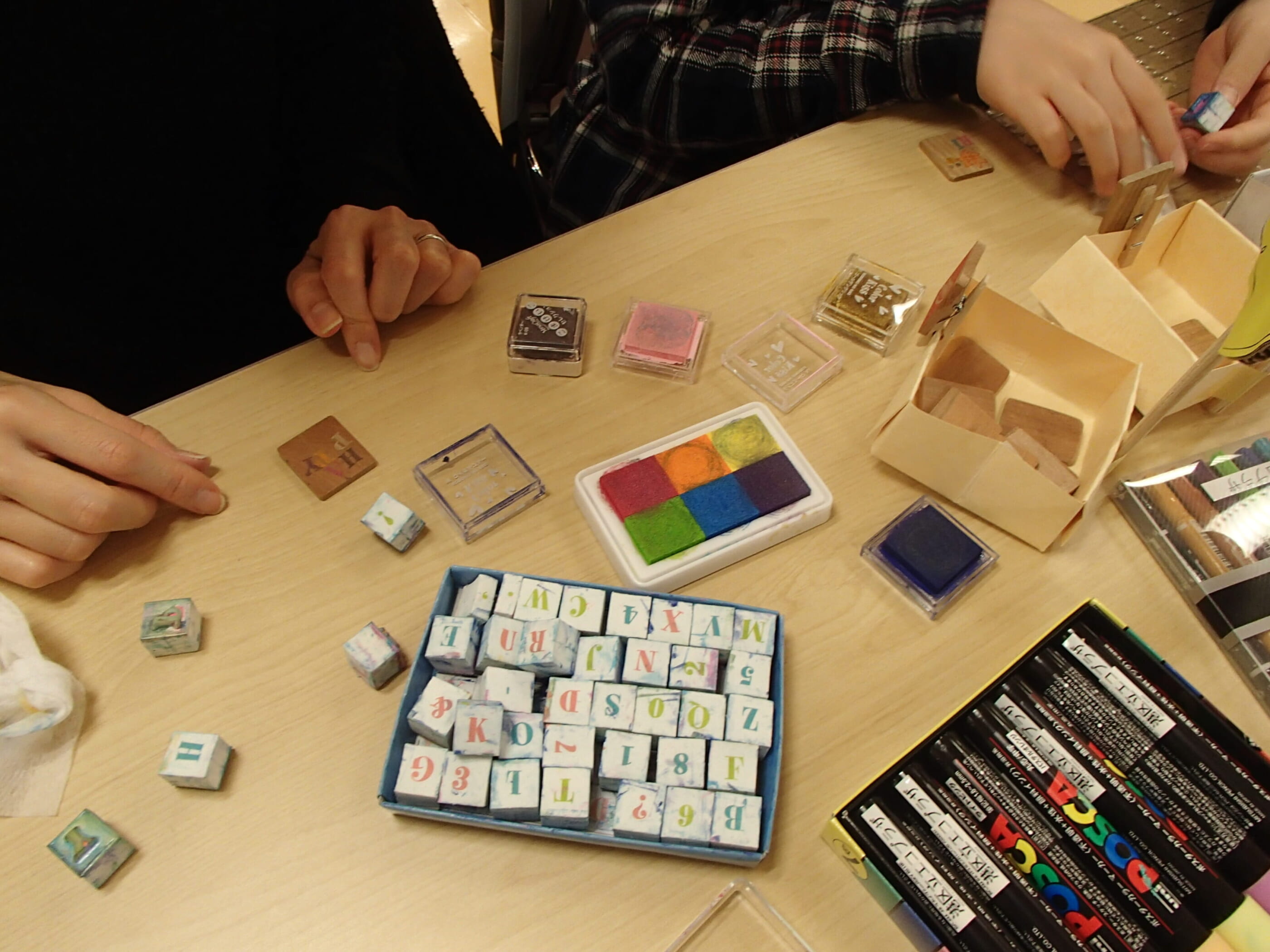 国産材を使ったオリジナルのクリップ作り体験を行いました。参加者は、ブナやタモ、カツラなどの端材を手に取り、樹種ごとの香りや木目の違いを五感で確かめました。その端材にペンで絵を描いたり、スタンプを押したりしてデコレーションし、オリジナルクリップが完成しました。